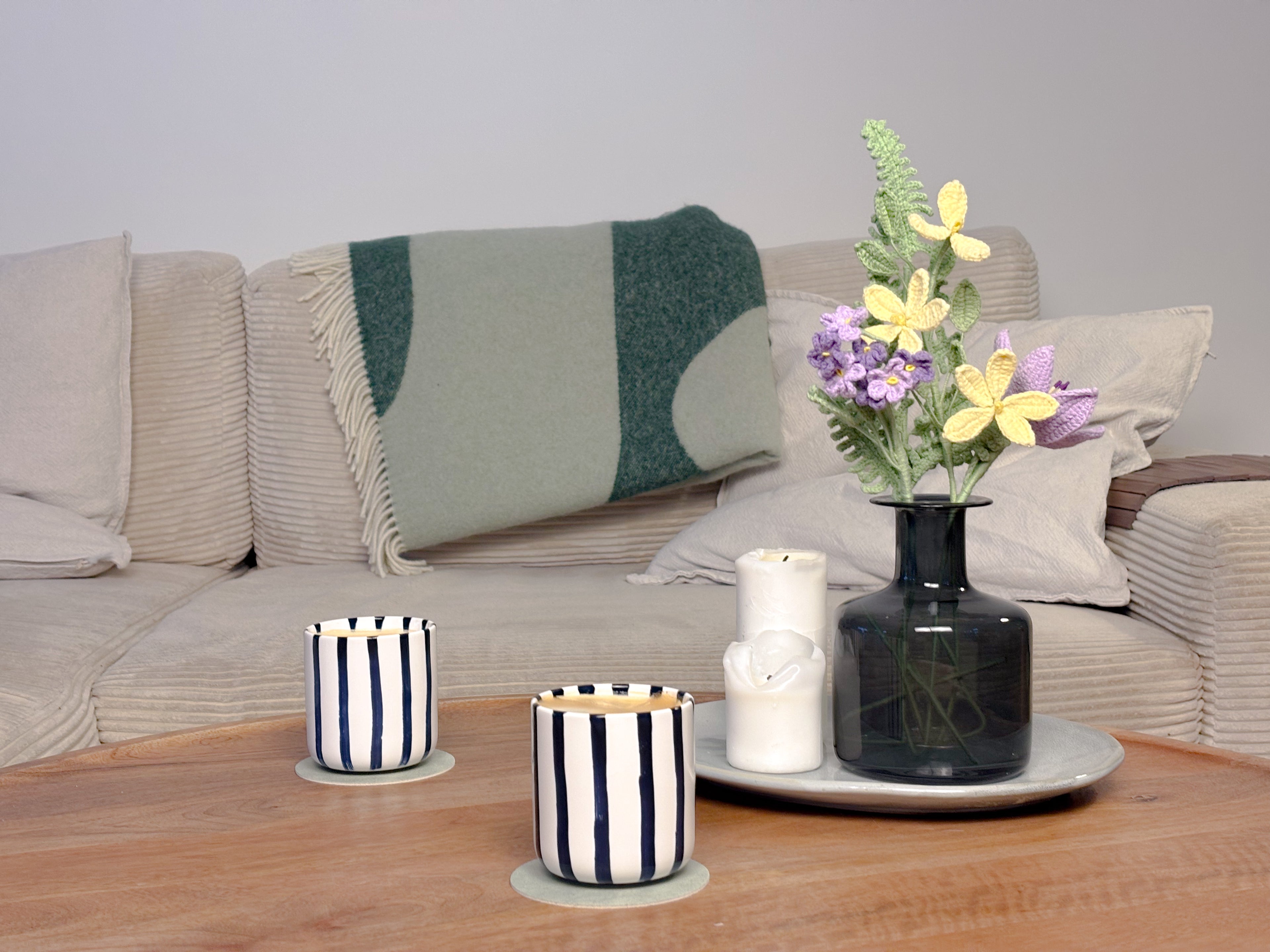 Jede Blume wird von Hand gehäkelt und bleibt dauerhaft in Form und Farbe. Kein Gießen, kein Welken, kein Wegwerfen.